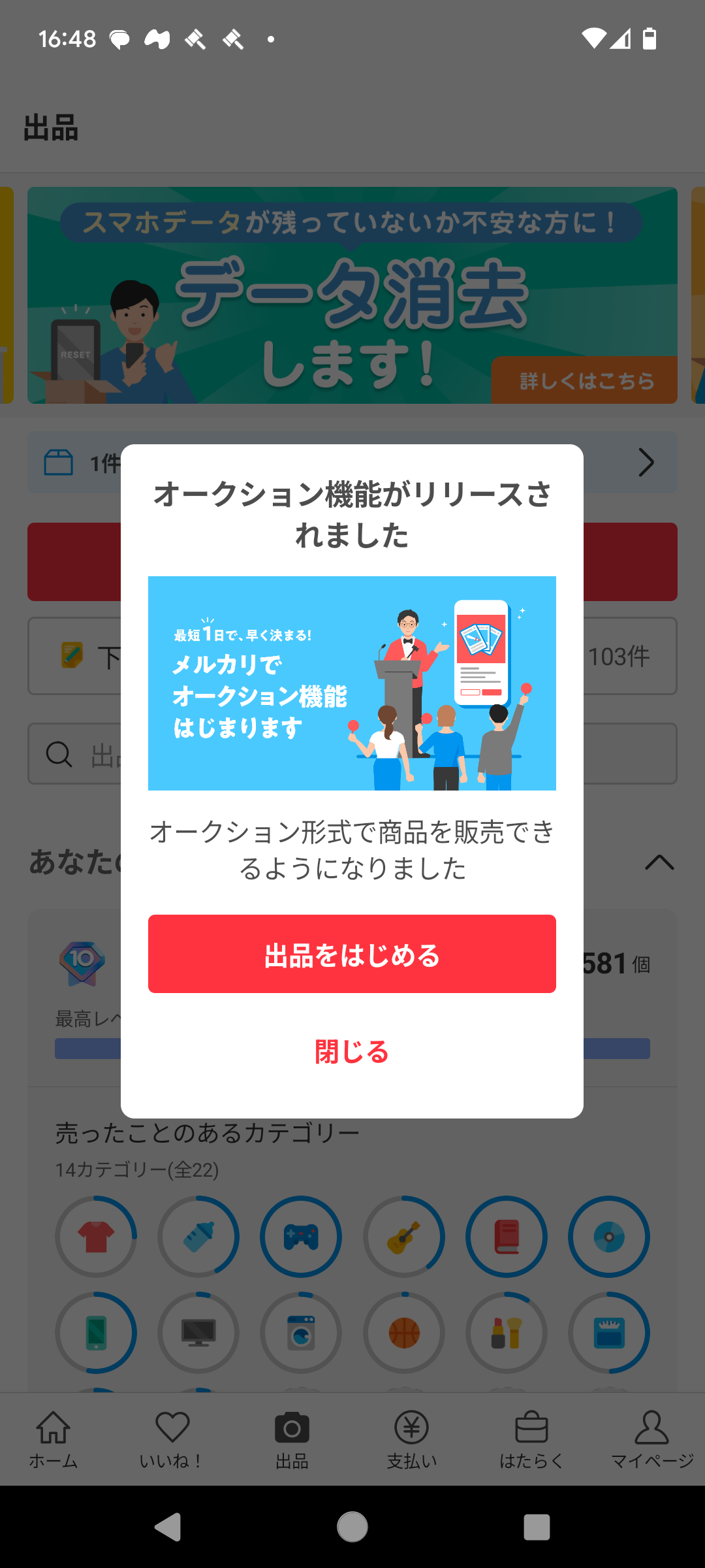 メルカリのオークション機能とは、そのまんまなのですが、オークションができる機能です。